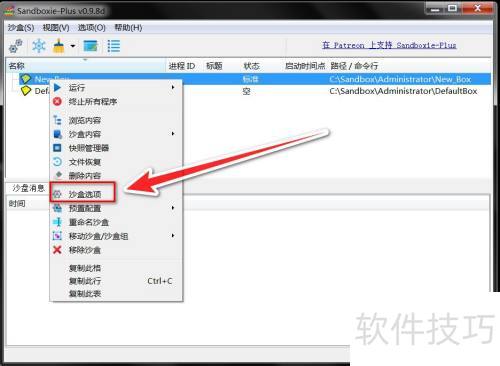 1、 在Sandboxie Plus窗口里,右键点选希望随软件启动的沙盘。