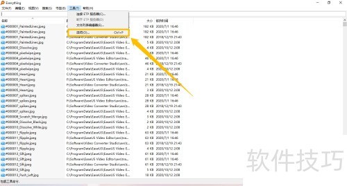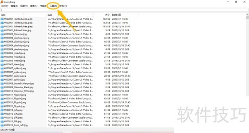 1、 在Everything主界面,点击顶部的工具(T)菜单选项。
