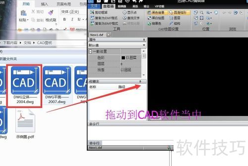3、 接着,将选中的CAD文件拖动到CAD软件中即可。
