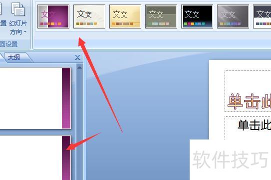 在已制作好的幻灯片中,点击顶部设计按钮,从弹出的模板选项中选择所需样式,即可一键更换整套幻灯片的模板。具体操作步骤如下: