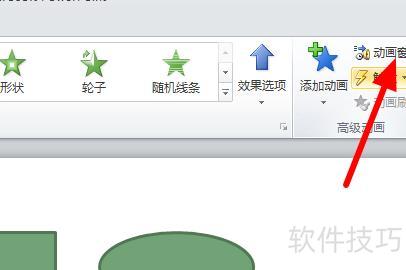 完成上述操作后,点击动画选项卡中的动画窗格按钮(所示),即可进入下一步操作。