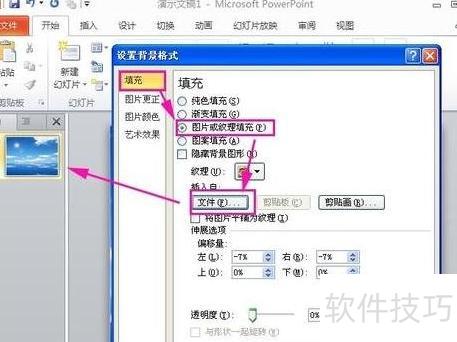首先需准备合适的素材,如用作PPT背景的图片。例如,我选用蓝天与大海的静态图像来制作动态效果。设置方法为:右键点击幻灯片,选择设置背景格式,进入图片或纹理填充,点击插入→从文件,选择所需图片即可完成背景设置。