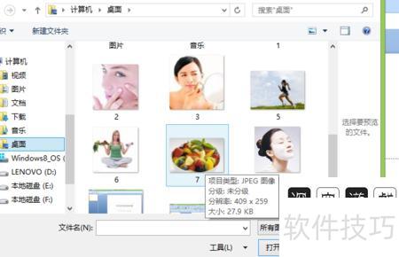 在选择纹理对话框中选中目标图片,点击打开按钮将其嵌入文字。