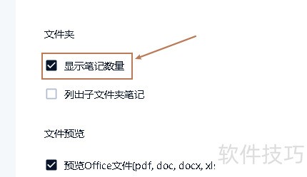 4、 在右侧界面打开后,勾选显示笔记数量,所示。