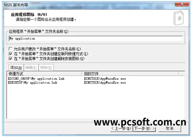 7、设置程序在开始菜单中的文件夹名称和快捷方式。