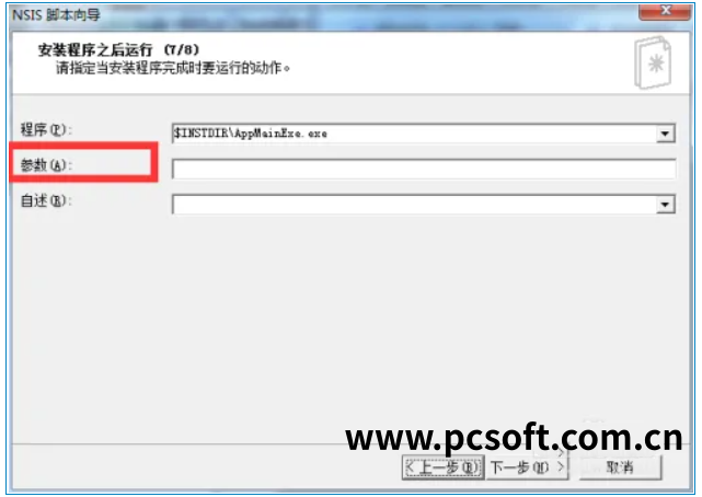 8、安装程序完成时要运行的动作,这里的参数,是程序运行时传递的参数,一般情况下都为空。