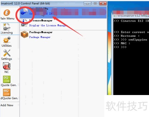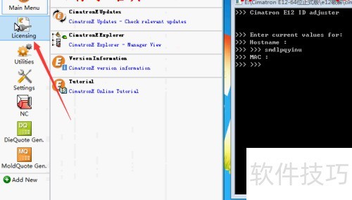 4、 在新弹出的命令行中,打开Cimatron E12许可文件夹licensing,具体操作请参照下图指引顺序完成。