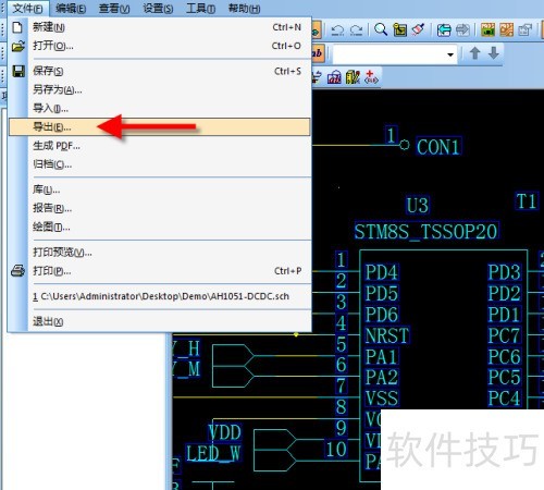1、 在PADS Logic中打开图11 - 56所示需转换的原理图,然后执行菜单里File(文件)—Export(导出)命令,导出一个ASCII编码格式的TXT文档。