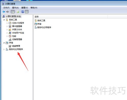 2、 在左侧选项栏中找到服务和应用程序,展开标题就能看到服务选项。