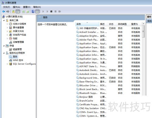 3、 点击服务选项,就会出现的电脑软件服务选项。