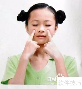 2、 其次是挤压睛明穴。睛明穴位于两眼内眼角旁边。用两个食指指腹按在睛明穴上,跟随音乐节拍向上挤压,每次挤压为一拍,总共八八六十四拍。