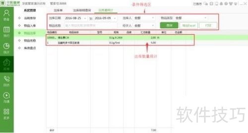 7、 通过选择筛选条件,精准查找并查看物品出库数量统计信息。