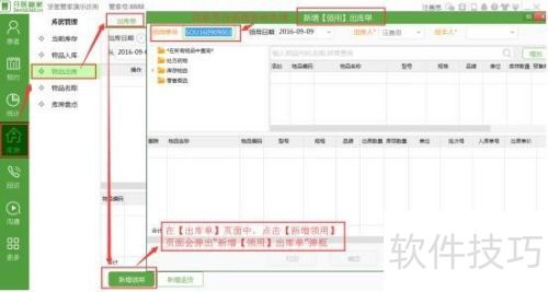 2、 新增领用出库单功能,用于记录物品领用出库情况。当领用物品时,需填写领用出库单,进入相应页面完成操作。