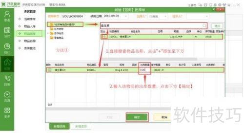 3、 添加出库物品,可直接搜索名称或按类目查找后添加。