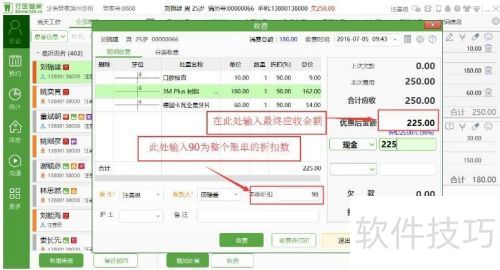 11、 整单折扣的设置,此单折扣是针对整个治疗项目的总花费,而非单个处置的费用,优惠后的金额即本次实收费用。