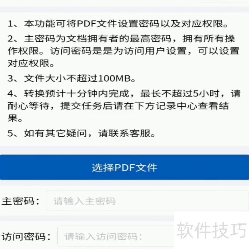 PDF文件不得设密码,若有需提前清除。