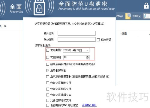 9、 上方密码为第一重防护,另可通过点击防拷选项,设置其他权限。