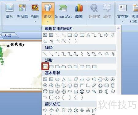 在视图菜单中开启网格线,选择插入形状中的矩形,按住Shift键绘制正方形。