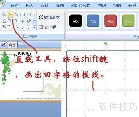 按住Shift键,用直线工具绘制田字格的横线。