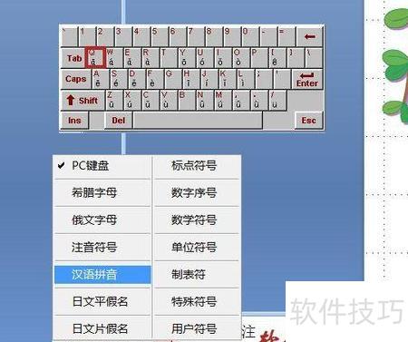 切换中文输入法,软键盘右键选拼音,点击输入ā。
