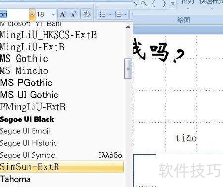 5、选择字体。要使文本框显示正确的拼音字体,需在字体选项中进行挑选。选中文本框后,点击字体下拉箭头,鼠标逐个滑过不同字体,拼音便会实时呈现对应样式。仔细浏览,可发现多种合适字体,我最终选用了楷体。