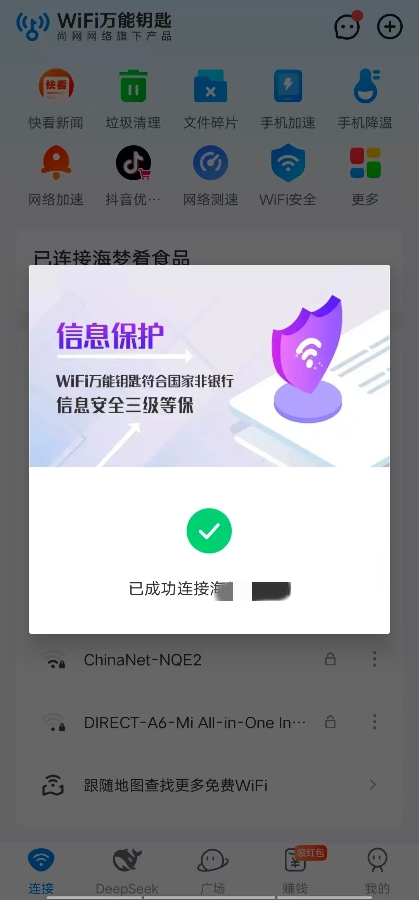 5、显示已经连接成功,即WiFi万能钥匙的自动连接成功。