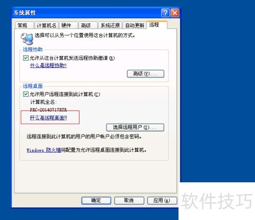 4、 若操作系统为WIN7及以上版本,在弹出的系统属性里,左侧菜单栏中有远程桌面设置,找到并点击远程设置,设置界面就会弹出。