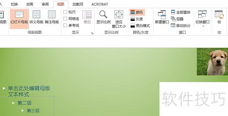 通过PPT母版功能,可将图片固定在每页相同位置。操作方法如下: