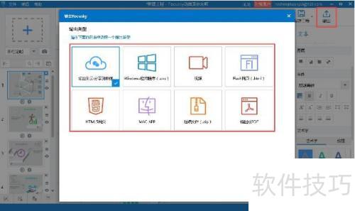 4、 制作完成后,点击右上角的导出按钮,即可保存课件。
