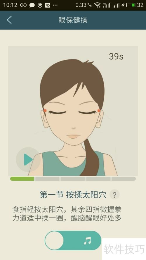 8、 下载专门的护眼软件,包含多种视力康复训练,比如眼保健操。它用动画演示操作方法和穴位,提供震动或音乐两种模式,音乐模式不会打扰他人,使用更贴心。