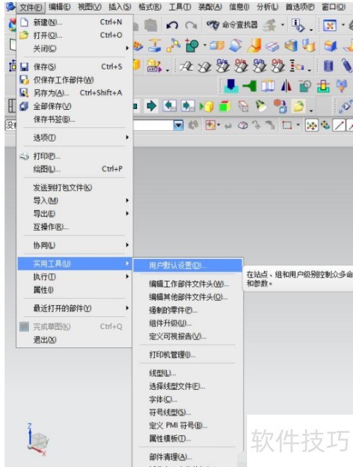 1、 找到文件中的实用工具选项,打开用户默认设置,参考下图。