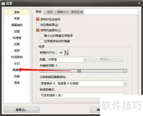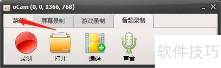 1、 打开电脑中的ocam软件,按照下图所示进行操作。