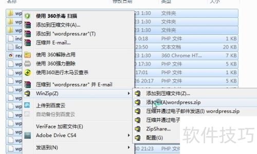1、 制作WordPress安装包的方法。你可能会问,为什么需要自己制作安装包,官网不是提供了吗?原因是官网提供的安装包不支持虚拟主机(如万网虚拟主机)的在线解压缩功能。解决办法是先下载官方安装包,解压后将其中的19个文件重新用WinZip压缩为一个文件,这样可以确保上传到虚拟主机后能正确解压到根目录,效果所示。