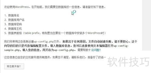 4、 在浏览器输入网站域名,打开后按提示准备数据库信息,点击现在就开始以继续安装过程。