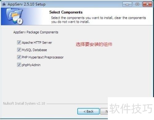 3、 在此步骤可选择要安装的程序与组件(默认全选),点击next以进入下一步。