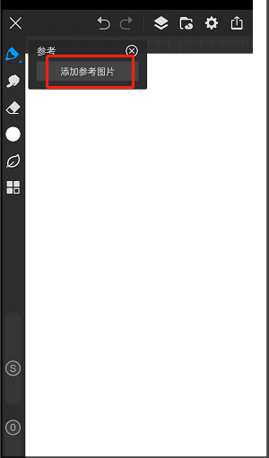 3、在画布的左上角会有一个“参考”的小界面,选择“添加参考图片”,就会跳转到选择图片的界面,如下图。