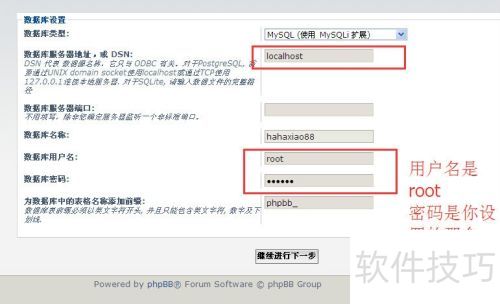 21、 将数据库相关信息输入数据库配置中,接着继续安装。
