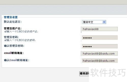 26、 设置管理员信息时,各网站安装程序或有不同,我这里要设置网站管理员的邮箱。