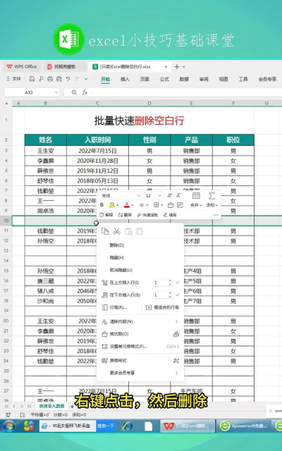 此外,针对中间零星分布的少量空白行,也可手动逐行选中后删除,虽然效率较低,但在数据量不大时仍具可行性。具体做法是直接选中某一空白行,右键选择删除,重复此步骤直至所有空白行消失。