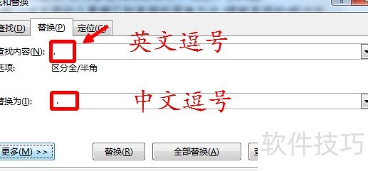 使用Word2013进行标点替换操作:首先打开文档,点击替换功能。在查找内容框中输入英文逗号,在替换为框中输入中文逗号。随后点击全部替换按钮,系统将自动完成所有替换,例如共修改77处。注意,中文与英文逗号外观相似,易混淆输入错误。
