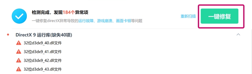 directx修复工具是一款专用于检测和修复directx组件异常的系统级工具;使用directX修复工具修复DLL文件,可以自动检测并修复系统中缺失或损坏的DLL文件,解决因DLL问题导致的程序错误和崩溃,能够从可靠的来源恢复所需的DLL文件,确保应用程序的正常运行,提升系统稳定性。