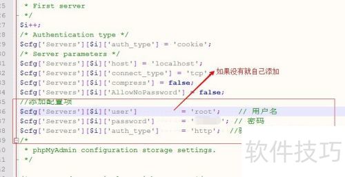 6、 打开config.inc.php文件,添加需要的配置项。