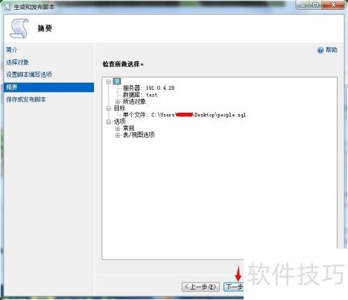 6、 显示:脚本生成与发布窗口、摘要、下一步、完成。