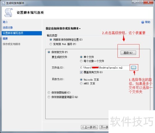 4、 显示:打开生成和发布脚本窗口,设置脚本编写选项,照图操作就行。