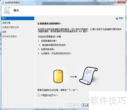 2、 显示生成和发布脚本窗口 - 简介(若可关闭此页面则可省略该步骤),然后点击下一步。