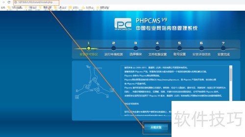 3、 3. 在地址栏中输入安装路径:http://127.0.0.1/00/install/install.php。