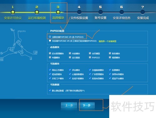 4、 4. 选择模块,再点击全新安装phpcms v9。