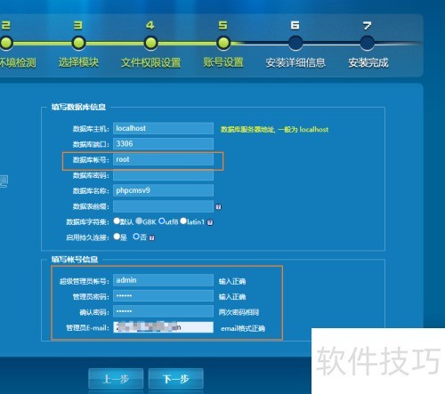 5、 5:账号设置,需设定数据库账号与账号管理信息。