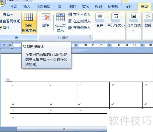 打开Word,插入表格后调整表头行列尺寸,使其与Excel表头相近。切换至布局选项卡,点击绘制斜线表头按钮即可完成设置。