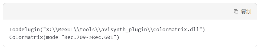 用于将 709 色彩空间的视频转换为 601 色彩空间,适合 720p 以上视频转为标清视频时使用。